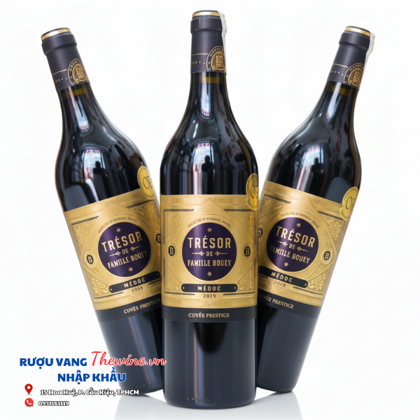TRÉSOR DE FAMILLE BOUEY RED 2019 là một viên ngọc quý từ vùng Médoc danh tiếng của Bordeaux, Pháp, mang trong mình tinh hoa của Maison Bouey – một nhà làm vang có lịch sử và truyền thống sâu sắc. Tên gọi "Trésor de Famille" (Kho báu gia đình) không chỉ là một cái tên, mà còn là lời khẳng định về di sản được truyền từ thế hệ này sang thế hệ khác, bắt đầu từ Jean Bouey vào năm 1821, người đã đặt nền móng vững chắc cho gia đình trong ngành sản xuất rượu vang Bordeaux.