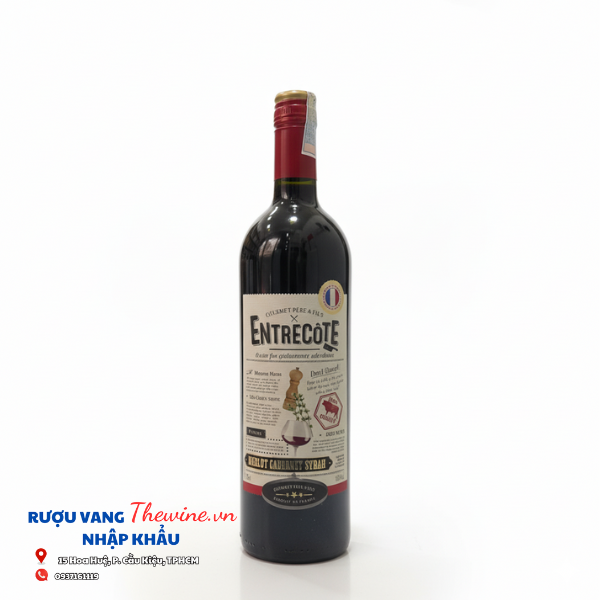 Chào đón ENTRECOTE 2023 – một kiệt tác vang đỏ đến từ nước Pháp lãng mạn, nơi nghệ thuật làm vang được gìn giữ qua bao thế hệ. Đây không chỉ là một chai rượu, mà là lời mời gọi cho những hành trình khám phá ẩm thực đầy mê hoặc, đúng như tinh thần 'A wine for gastronomic adventures' mà nhà sản xuất gửi gắm. Được pha trộn tinh tế từ ba giống nho danh tiếng: Merlot mang lại sự mềm mại, Cabernet Sauvignon với cấu trúc vững chắc và Syrah điểm xuyết nét cay nồng quyến rũ, ENTRECOTE 2023 là sự kết hợp hoàn hảo, tạo nên một bản giao hưởng hương vị khó quên.